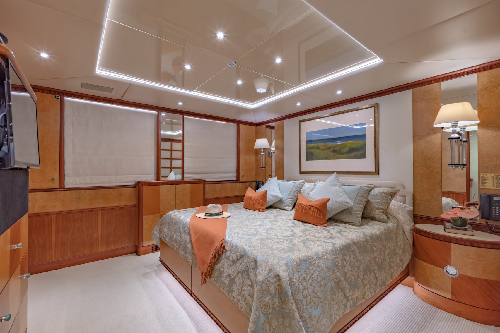 Positioned forward on the main deck, the full-beam master benefits from wide, uninterrupted windows—flooding the space with light while maintaining complete privacy.