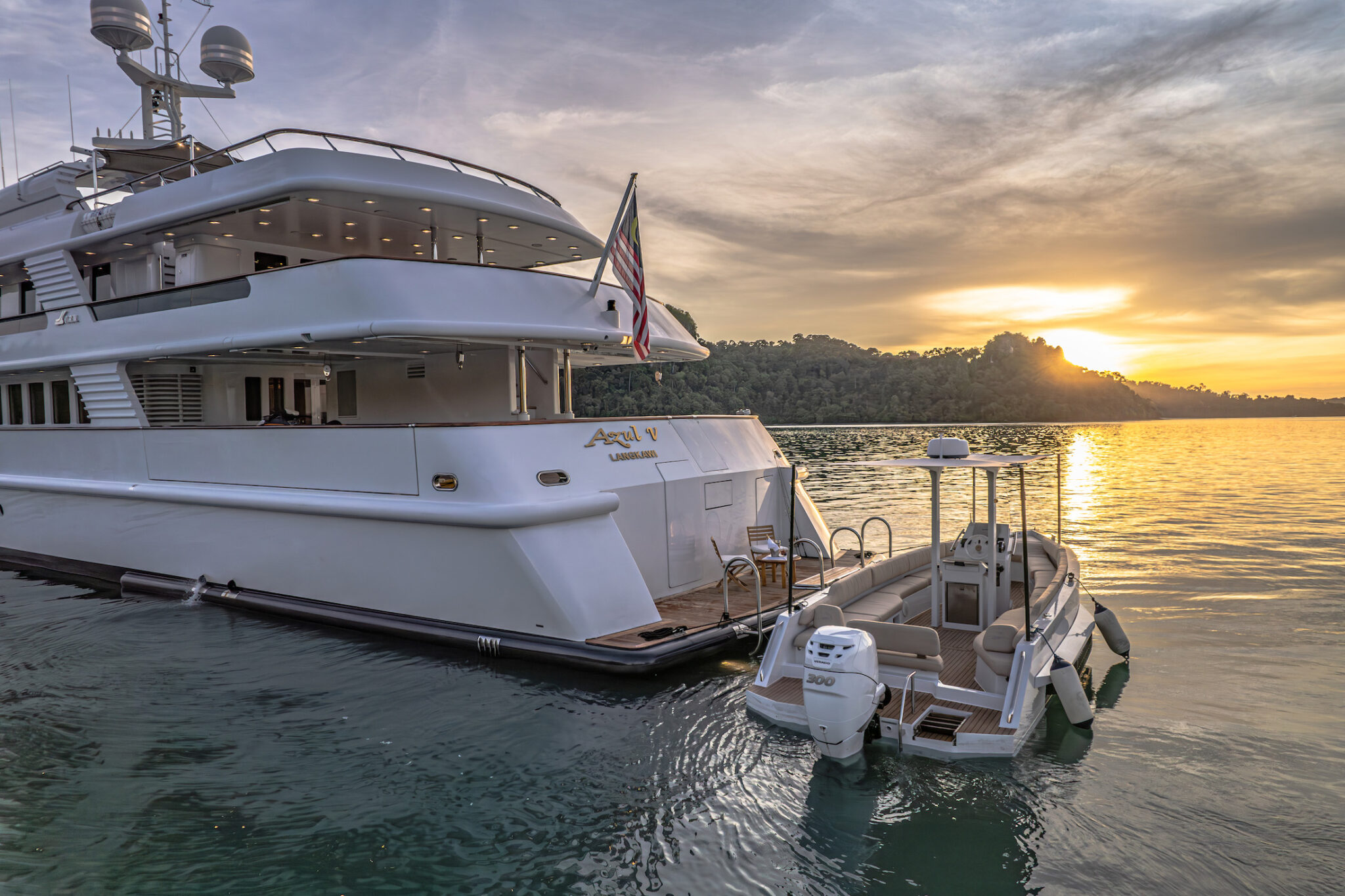On the main deck aft is the tender area. An extended swim platform enables easy water toy access.